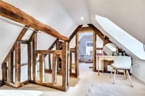 The first floor gallery landing leads to three generously proportioned bedrooms and includes a superb master bedroom with stylishly appointed en-suite shower room. The luxury family bathroom is beautifully appointed and features both bath and double walk in shower cubicle. The second floor landing displays a wealth of exposed timbers and leads to two further double bedrooms.