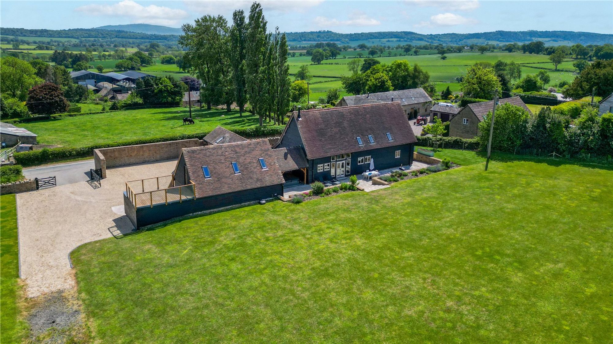 A remarkable example of barn conversion architecture, Cruck Barn is a substantial family home blending traditional craftsmanship with modern luxury. Set amidst idyllic countryside surroundings, this impressive home is finished to an exceptional standard, offering expansive living spaces, contemporary comforts, and outstanding views.