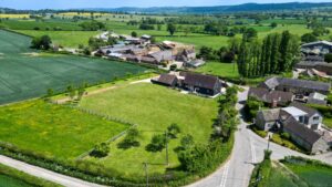 To the rear of the garden is a separate paddock/meadow which is enclosed by post-and-rail fencing. Immediately behind the house is a paved area offering a perfect space to sit and enjoy the rural views and for entertaining. This paved continues around to the front of the house which leads to a further gravelled area and children’s play area. The play area is bordered and filled with bark, offering a safe environment for children to play while remaining in close proximity to the house.