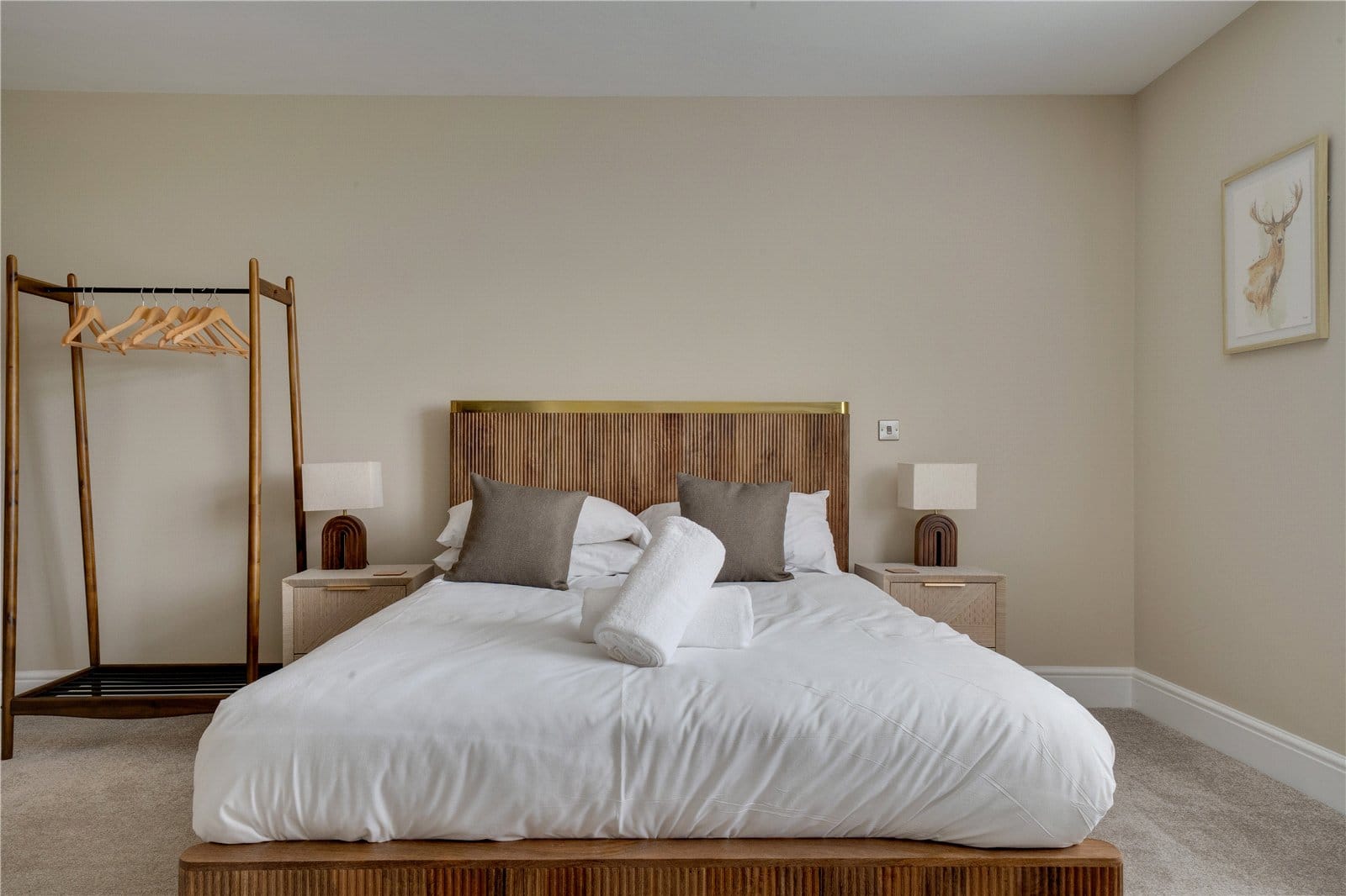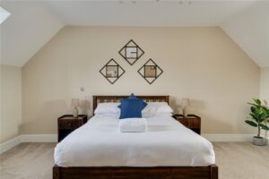 The impressive accommodation continues in style with seven beautifully appointed bedrooms. A private king-size with en-suite is accessed via the dining room staircase, while the remaining six—each with countryside views and plush finishes—are reached from the main staircase. Most enjoy en-suite facilities, while the family bedroom features a mezzanine twin room, and one twin is served by a luxurious family bathroom.