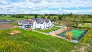 The generous grounds invite exploration, where hares and rabbits dart across the meadow and owls call from the trees at dusk. Outdoor living is equally inspiring, with a large patio, fully equipped outdoor kitchen, and summerhouse. The outdoors provides plenty of entertainment for both adults and children alike with a enclosed children’s playpark, zip line for the adventurous, tennis court and putting green with four tee’s for the keen golfer to practice their chip and put. Ample parking and double garage ensures plenty of parking for all the family and guests.
